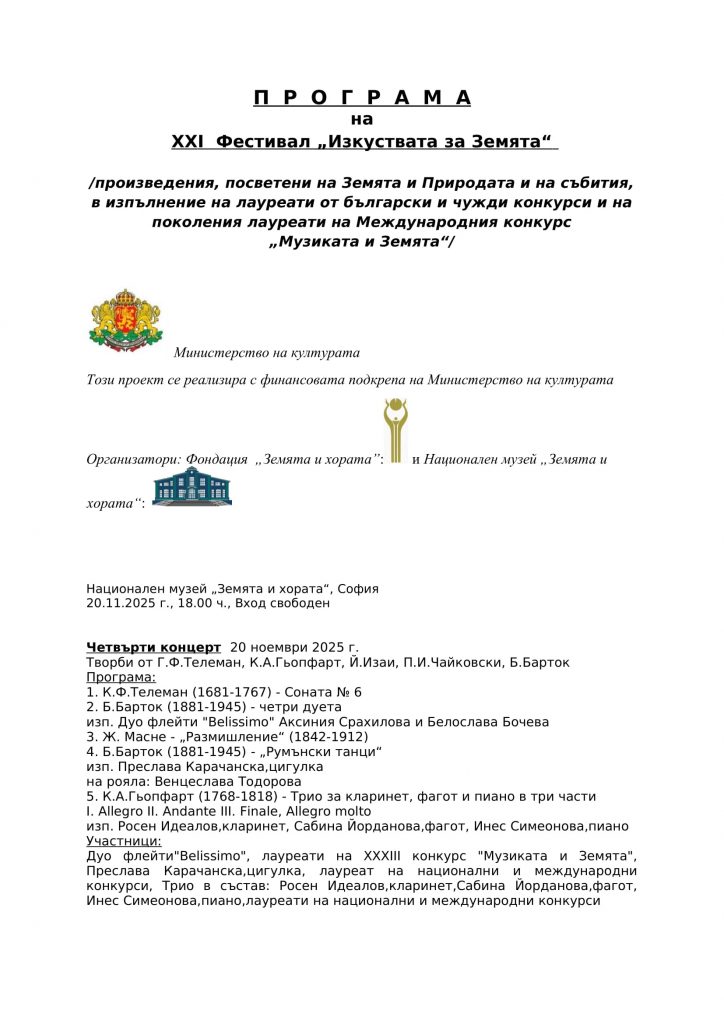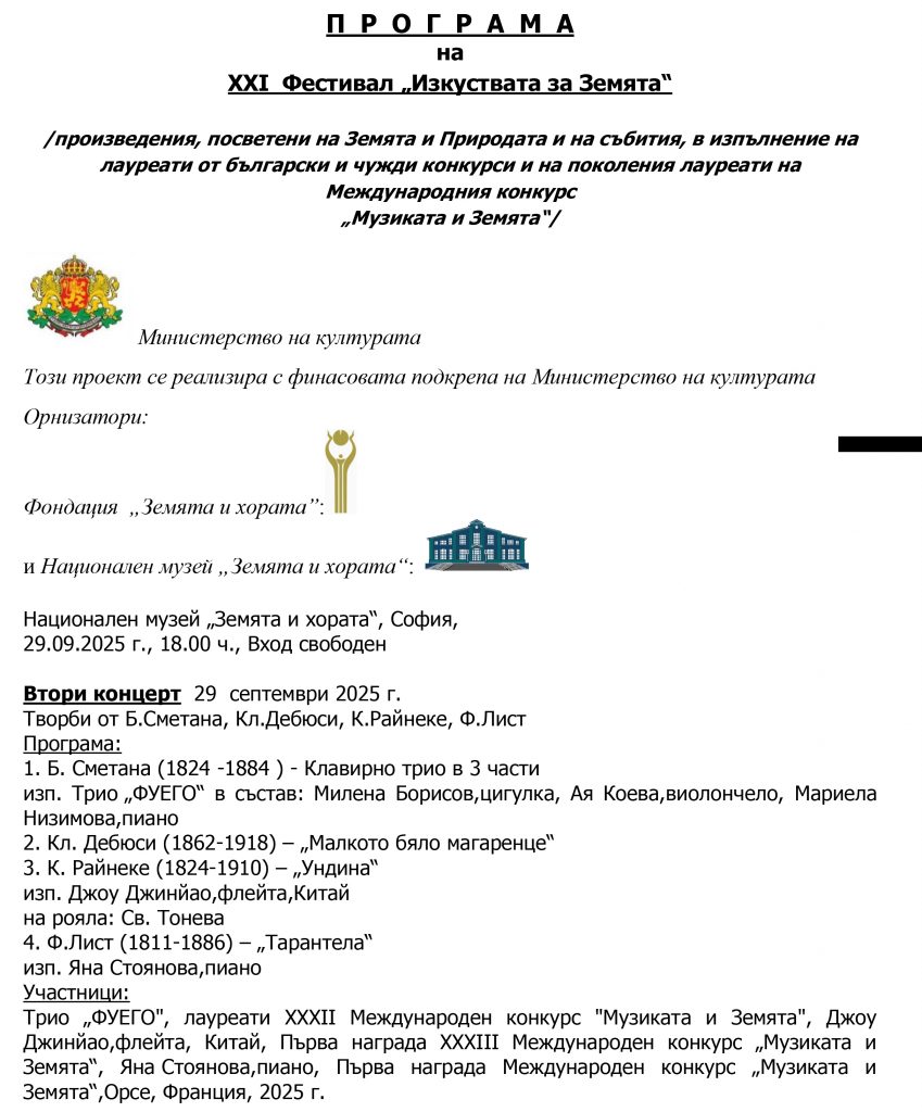 Концертът се реализира с финансова подкрепа на Министерството на културата.