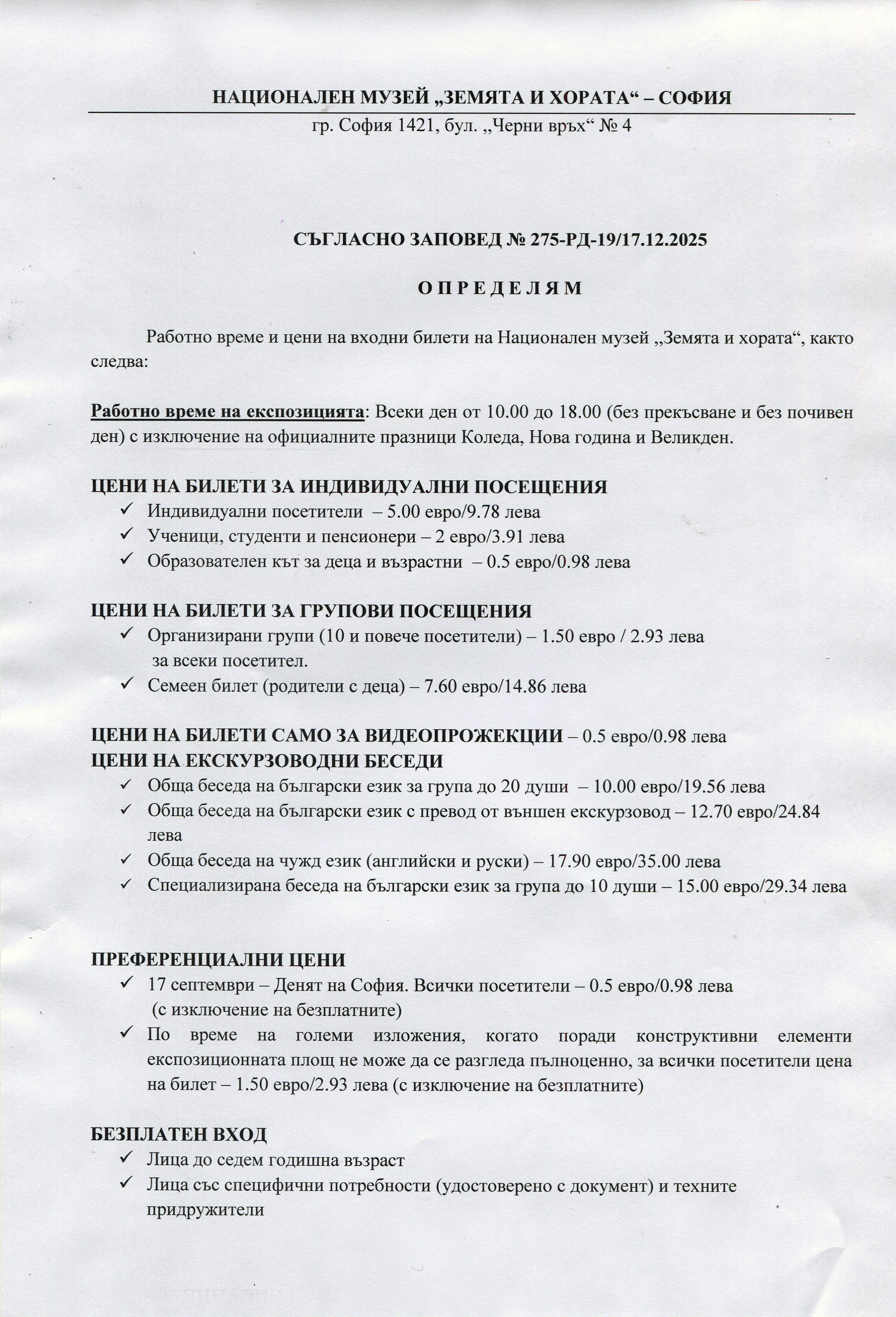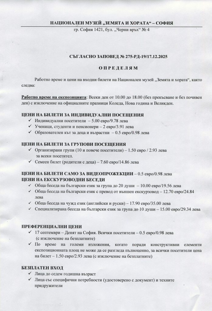 НАЦИОНАЛЕН МУЗЕЙ "ЗЕМЯТА И ХОРАТА" - СОФИЯ