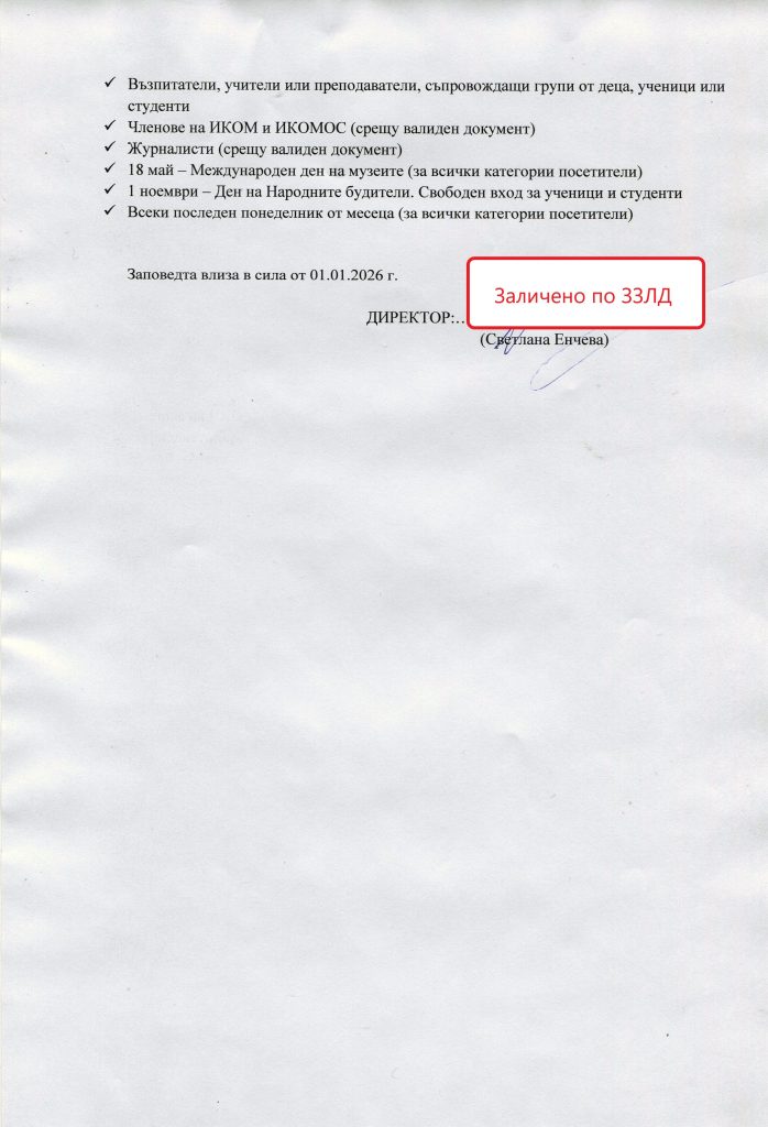 Работно време на администрацията на музея: